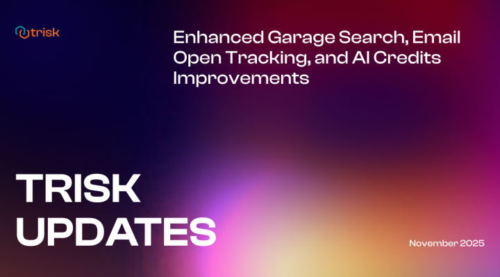 Trisk Updates November 2025: Enhanced Garage Search, Email Open Tracking, and AI Credits Improvements